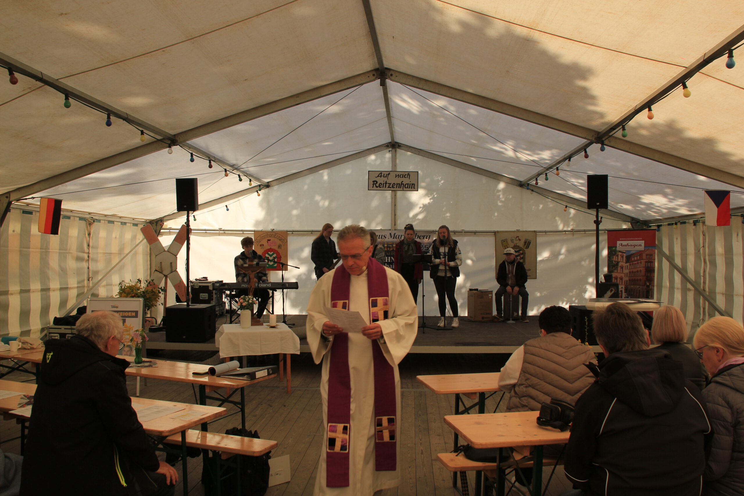 Auch für Abwechslung war gesorgt: Eine Technikschau der Feuerwehren aus Reitzenhain, Satzung, Lauta und Sebastiansberg, ein Zeltgottesdienst am Sonntagmorgen sowie Angebote für Kinder – von Hüpfburg über Glücksrad bis hin zur Bastelstraße – machten das Fest zu einem Erlebnis für Jung und Alt.
